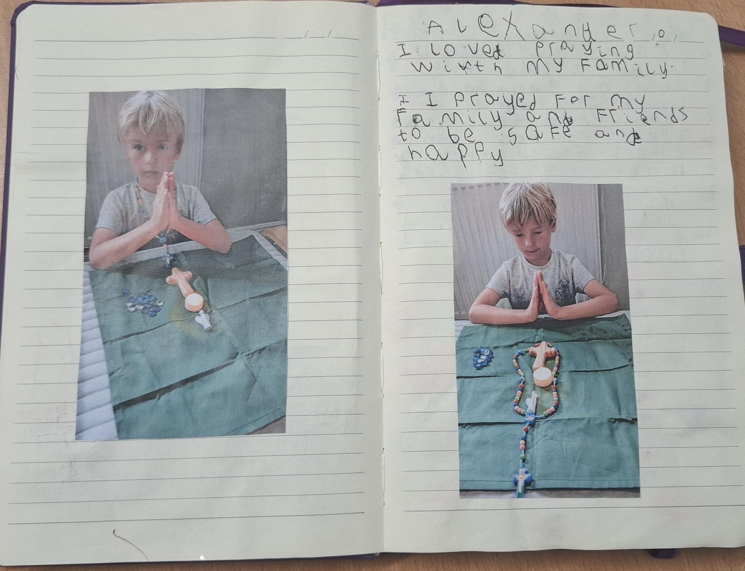 Each week, one child in each class is invited to take home the class prayer bag. The bag contains items to support prayer at home, such as liturgical coloured cloths and other items to create a prayer space at home. Each bag also has a notebook in it which the children can use to share the prayers they said or a photo of how they used the bag with their family. They then share what they did with their class. Guidance is provided for families regarding how they may like to use the bags: In this prayer bag.docx
