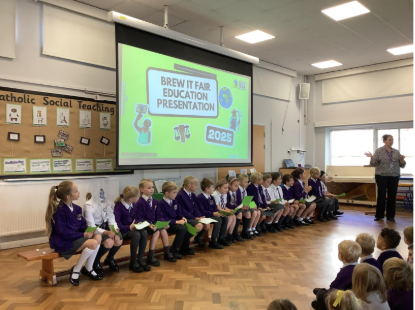 Year 4 and Mrs. Newland led a collective worship for the whole school on Tuesday on the theme of Fairtrade. The children learnt about products that are Fairtrade and were challenged to spot the Fairtrade symbol at home! Thank you to one Year 3 pupil who must have gone straight home and looked around his house! Will your children persuade you to buy Fairtrade? Mrs. Armstrong has planned learning for each year group linked to fairtrade as part of our ”Fairtrade Fortnight” focus. Buying fair trade products is a practical way for us to live out Catholic Social Teaching – as it fosters worker dignity, fair wages, safe working conditions, environmental stewardship, and global solidarity. By living out Catholic Social Teaching, we are truly continuing Jesus’ mission and following in his footsteps.