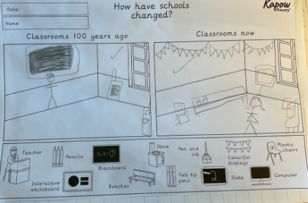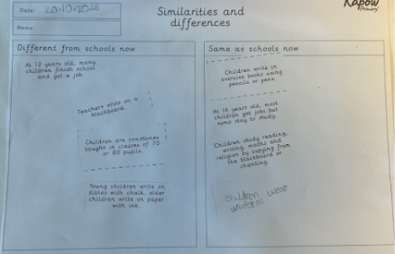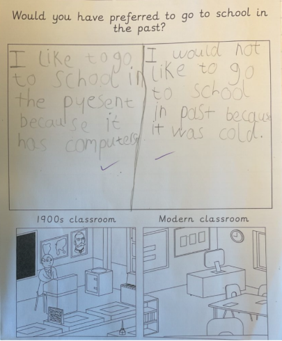 Year 2 - In History, we have been exploring the question “How was school different in the past?” We asked thoughtful questions that we would have liked to ask someone who went to school in the early 1900s. We compared a modern classroom to one from the 1900s and identified the similarities and differences between schools then and now. Finally, we decided which time period we would have preferred to go to school in, giving reasons for our choices.
