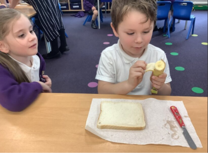 Year 1 have been learning all about commands and algorithms in Computing, they even programmed each other to make banana sandwiches! In Geography, they created a 'messy map' of the classroom showing their creativity by choosing counters, dinosaurs, cubes and wooden blocks to create an aerial view of the room. In DT, they had a competition to build the tallest and most stable structure out of Lego, cubes and then from recycled items.