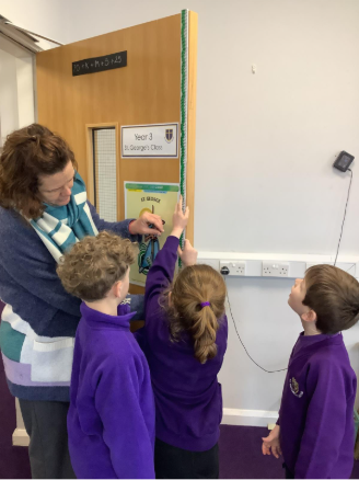 There has been a flurry of activity in and outside of school this week! Year 4 enjoyed a walk to Snoxhall Park on Wednesday on a Geography field trip to explore the use of local land and compare this to the Amazon rainforest! Year 1 have produced some amazing writing based on The Bear and the Piano using the conjunction ‘and’ to join two sentences together. Year 5 were busy recycling old t-shirts into bags on Thursday afternoon and then went off to the Royal Grammar School in Guildford for a Tudor Day today! (Photos to follow after half term!) Year 6 have been learning about area and permiter. In Maths, Year 3 have been exploring measure - the classroom door measure 202.5cm! Year 2 have been reflecting on the feelings linked to saying sorry and forgiveness. Reception were busy making Valentine’s day cards today!
